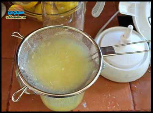 ۴. آب لیمو را صاف و جدا از دانهها نگه دارید